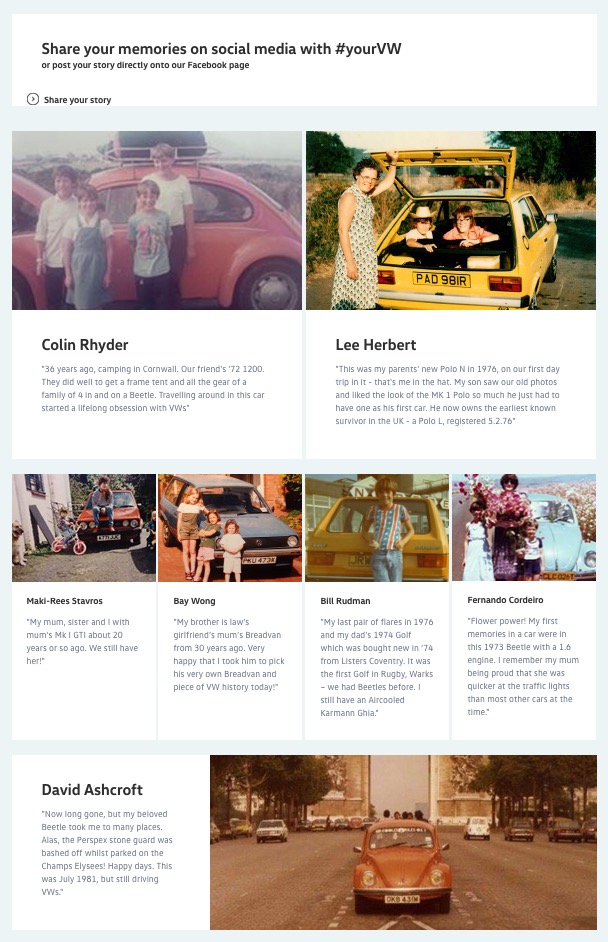 A socially-led brand campaign. Volkswagen fans were asked to share stories about their beloved past cars in the hope that we could re-unite them. For one unsuspecting individual, we did just that.